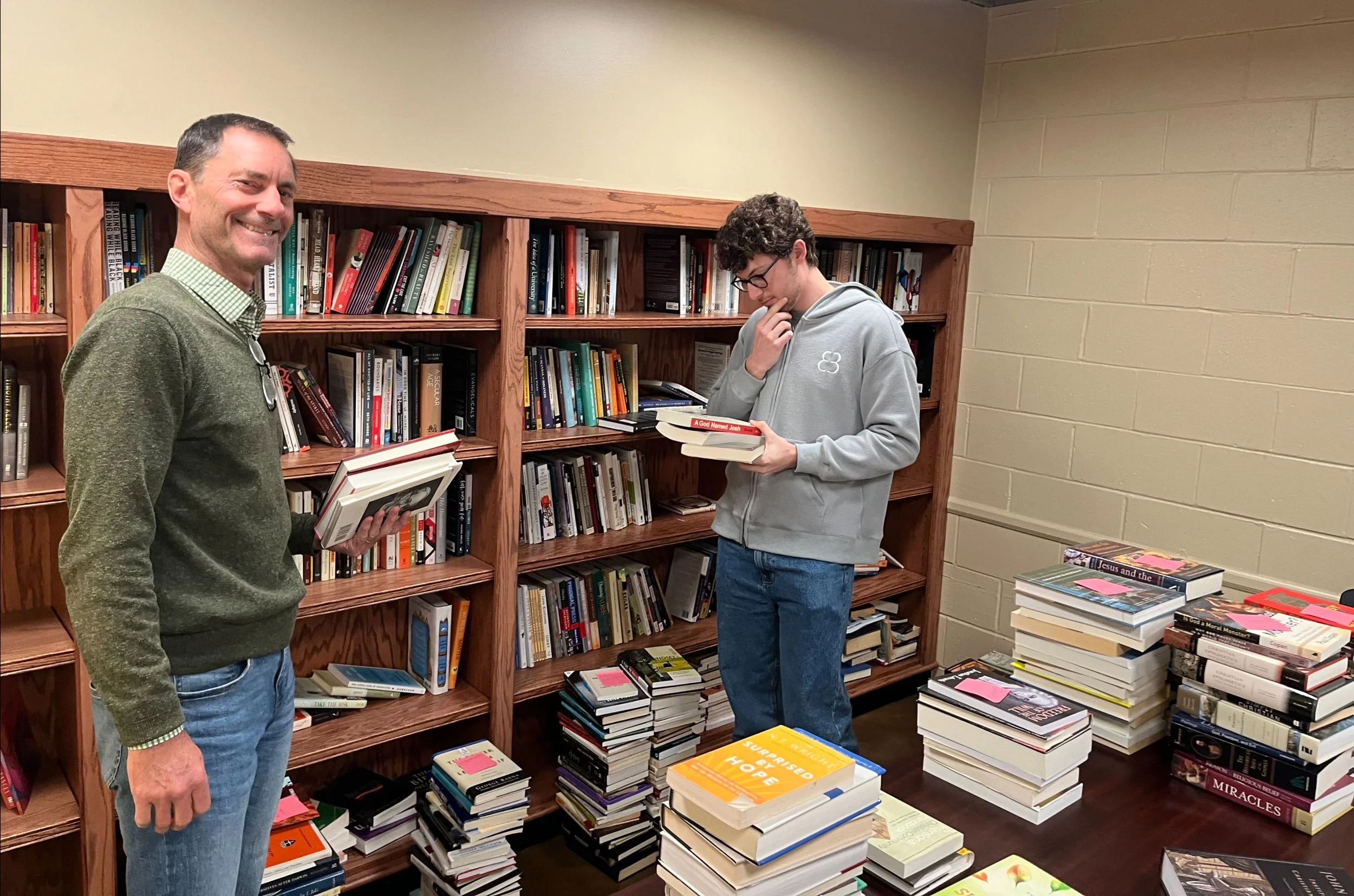 Over the past month, student Brady Nichols and I categorized and shelved hundreds of books in the Center's emerging library of Christian resources, which serves as a visible expression of the Center’s commitment to Christian thinking in all of its depth and variety. I doubt that there’s another place on campus where Augustine, John Calvin, Tim Keller, C.S. Lewis, Dorothy Sayers, and Tish Warren share the same bookshelf. We are grateful to several Center supporters who have contributed to this valuable and growing resource.