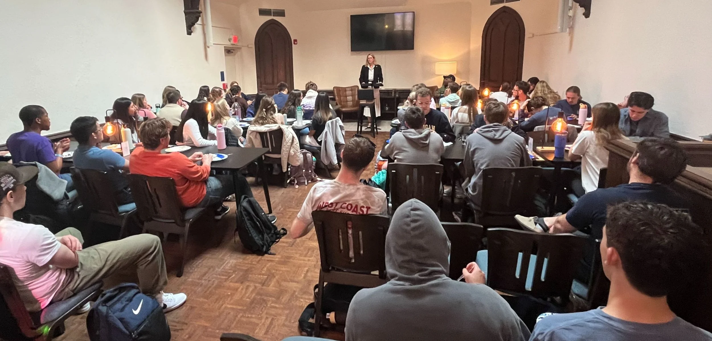 Our core commitment continues to be equipping students to love God with heart and mind and to connect faith, learning, and living. In recent “Taking Your Faith to College” Friday lunches, students heard from U of M Astrophysicist Cameron Gibelyou, Michigan Law alum Susan Vogel-Vanderson (pictured below), and Michigan Engineering alum Jon DeGaynor.